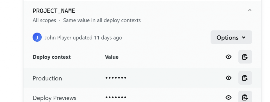 - For each app in Netlify, add an environment variable PROJECT_NAME with the app name as it is in the monorepo: