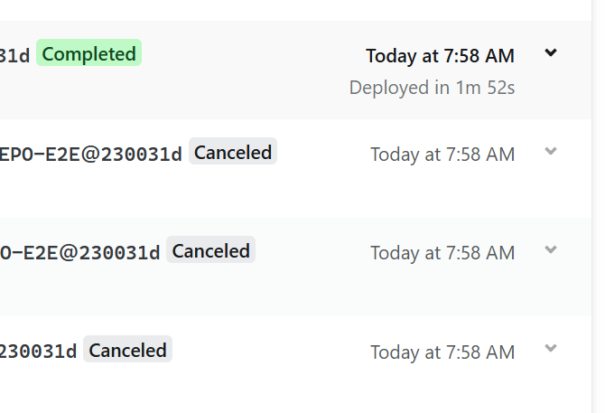 module.exports = { onBuild: ({ utils }) => { const currentProject = process.env.PROJECT_NAME; const lastDeployedCommit = process.env.CACHED_COMMIT_REF; const latestCommit = 'HEAD'; const projectHasChanged = projectChanged( currentProject, lastDeployedCommit, latestCommit, ); if (!projectHasChanged) { utils.build.cancelBuild( `Build was cancelled because ${currentProject} was not affected by the latest changes`, ); } }, }; function projectChanged(currentProject, fromHash, toHash) { const execSync = require('child_process').execSync; const getAffected = `npx nx show projects --affected --base=${fromHash} --head=${toHash}`; const changedProjects = execSync(getAffected).toString(); return changedProjects.includes(currentProject); }